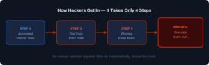 The process is systematic, continuous, and far less dramatic than most people imagine. Modern attacks are not manual they are driven by automation, scale, and predictable weaknesses.